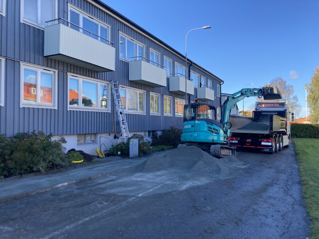 Tre etapper på lika många veckor och därmed parkeringsförbud ett hus per etapp. Resultat? Samtliga bilar har varit flyttade inför varje deletapp – rosor till alla Bagaregårdare som hörsammade detta så bra!